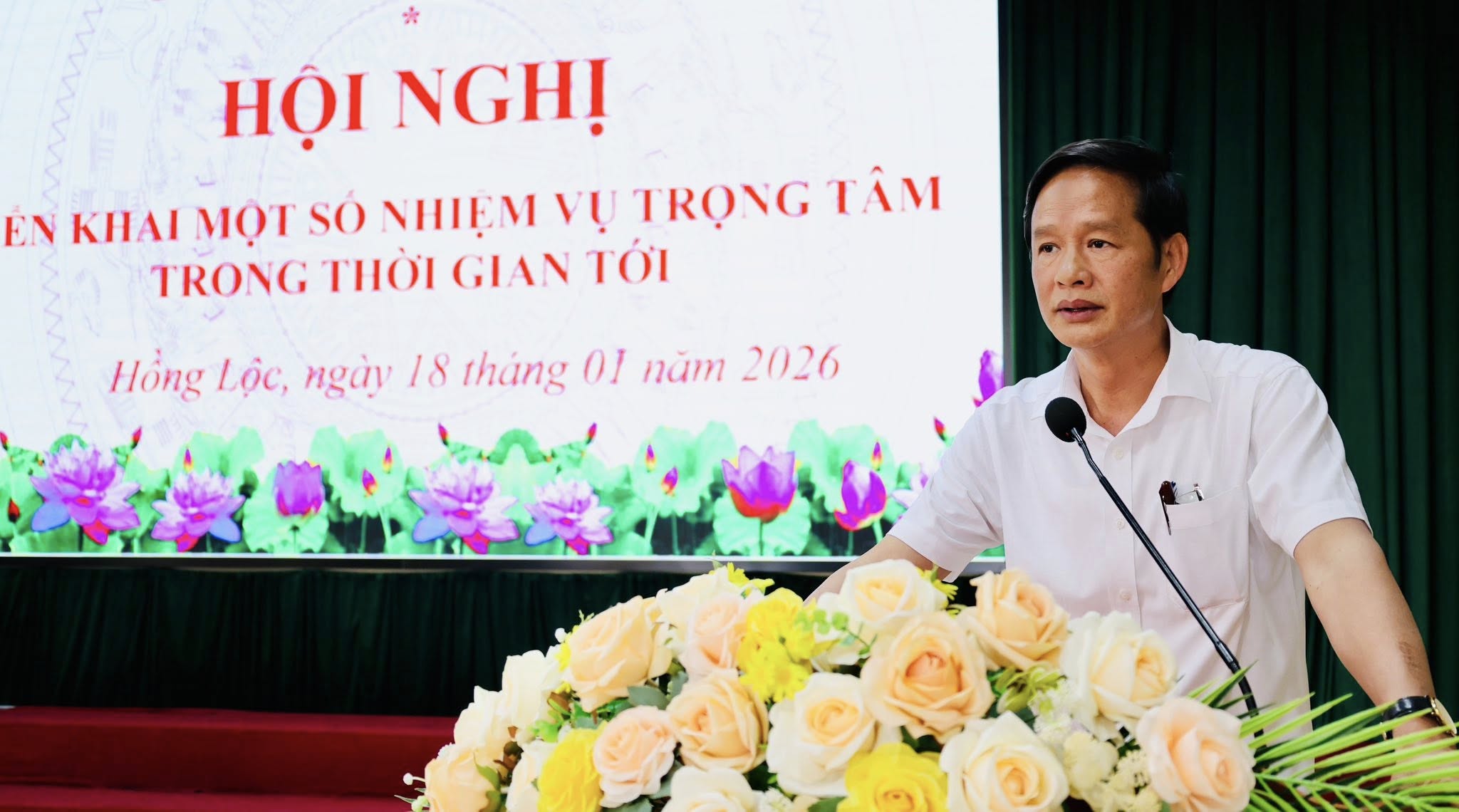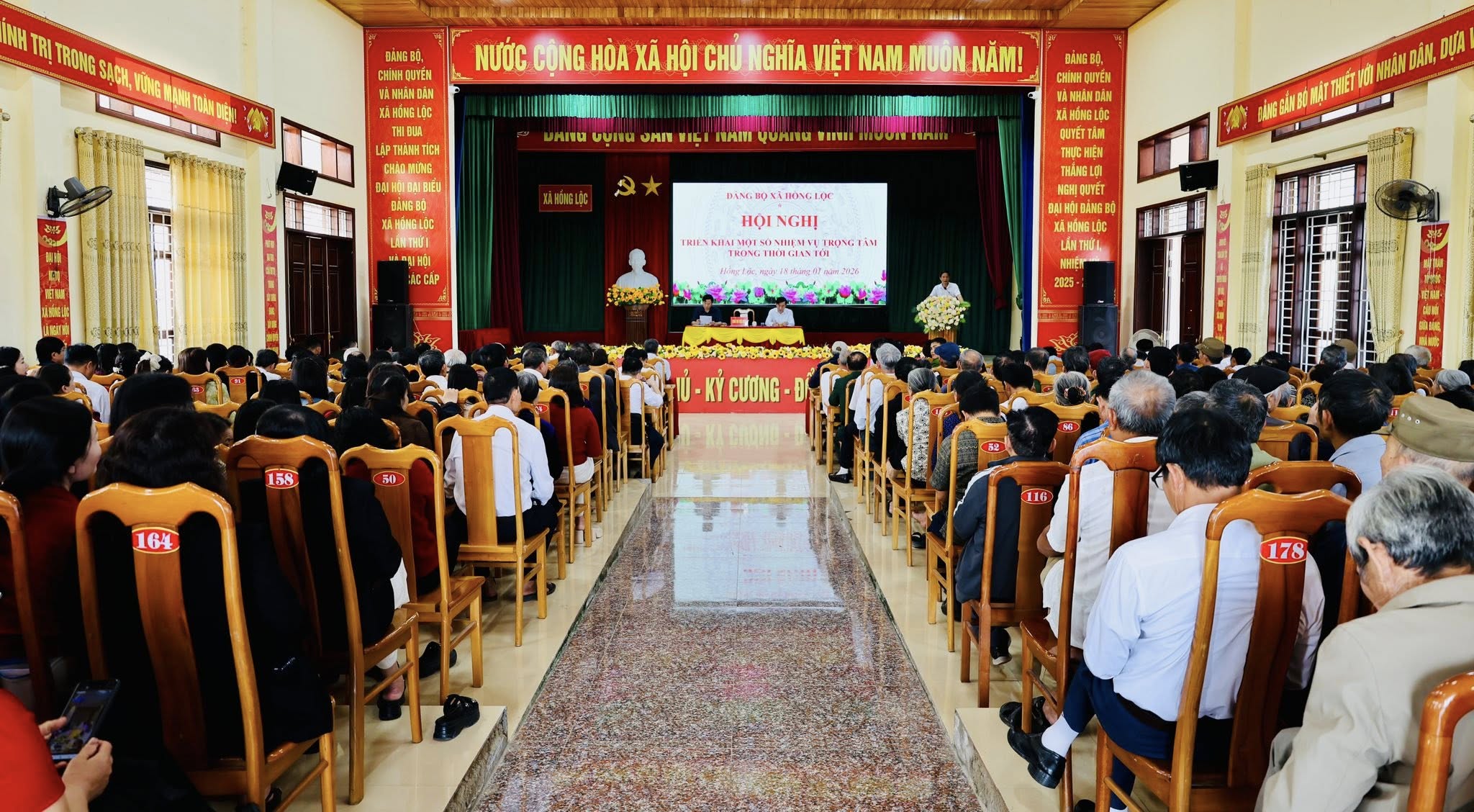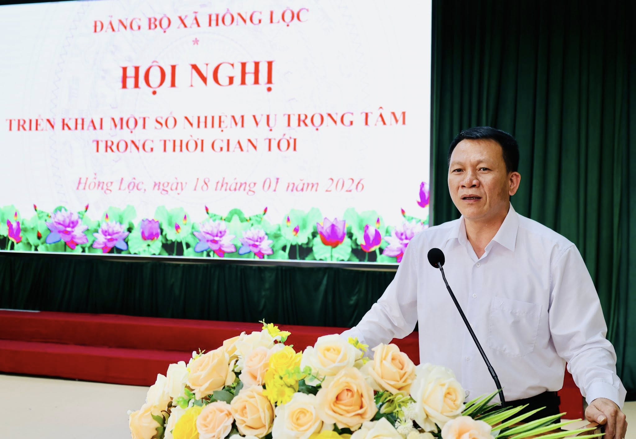 Chiều ngày 18/01/2026, Ban Chấp hành Đảng bộ xã Hồng Lộc tổ chức Hội nghị triển khai một số nhiệm vụ trọng tâm năm 2026 của Đảng ủy xã, đồng thời quán triệt các nghị quyết của tỉnh và của xã, cũng như thông tin về Dự án Nhà máy xử lý rác thải trên địa bàn.