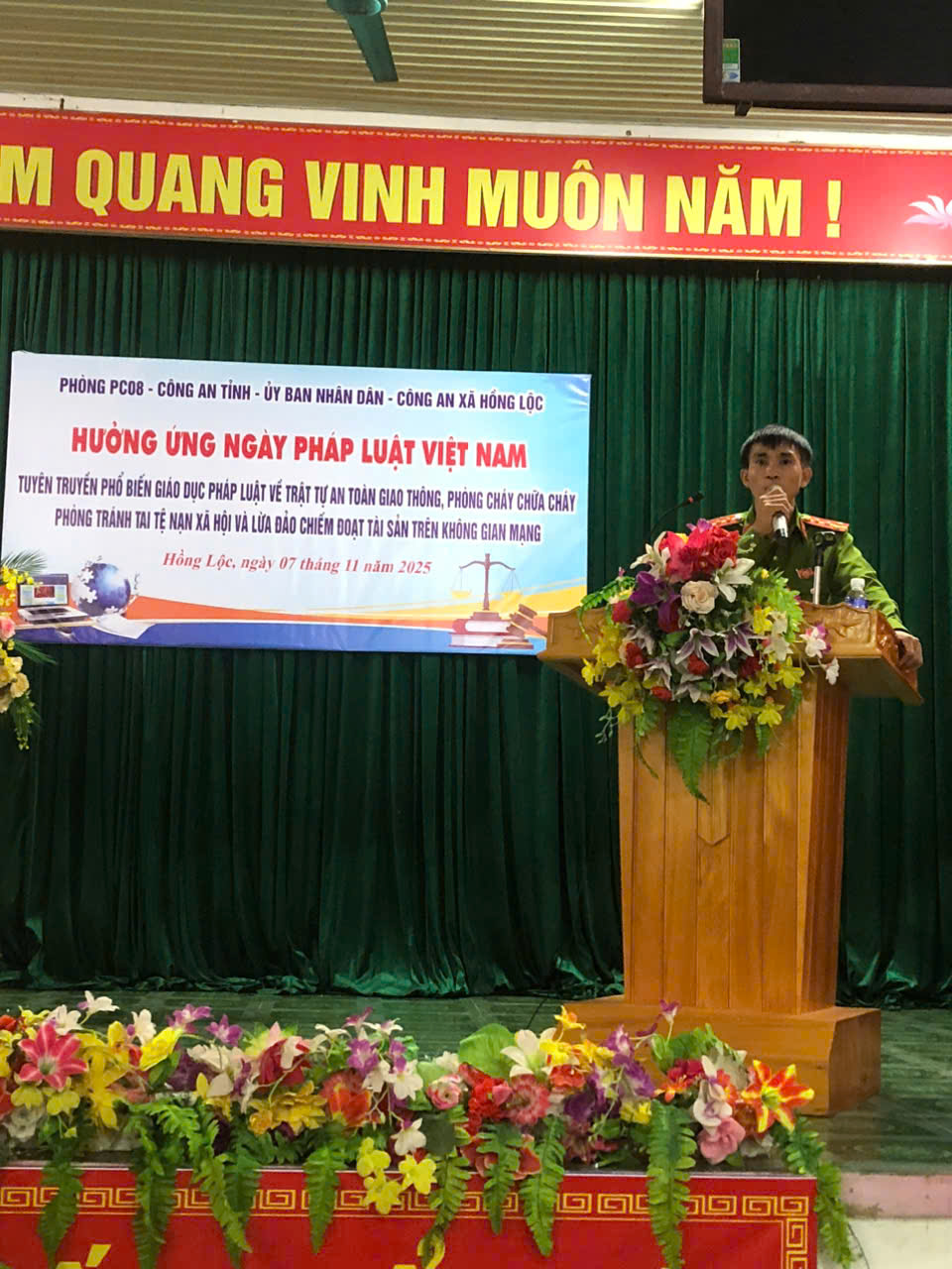 Ngày 07/11/2025 UBND xã Hồng Lộc phối hợp với Phòng PC 08 Công an tỉnh, Công an xã Hồng Lộc tổ chức tuyên truyền phổ biến Pháp luật của nhân dân trên địa bàn toãn xã với các chuyên mục tuyên truyền về Trật tự an toàn giao thông, Phòng chống tai tệ nạn xã hội, Phòng cháy chữa cháy và phòng chống lừa đảo trên không gian mạng.