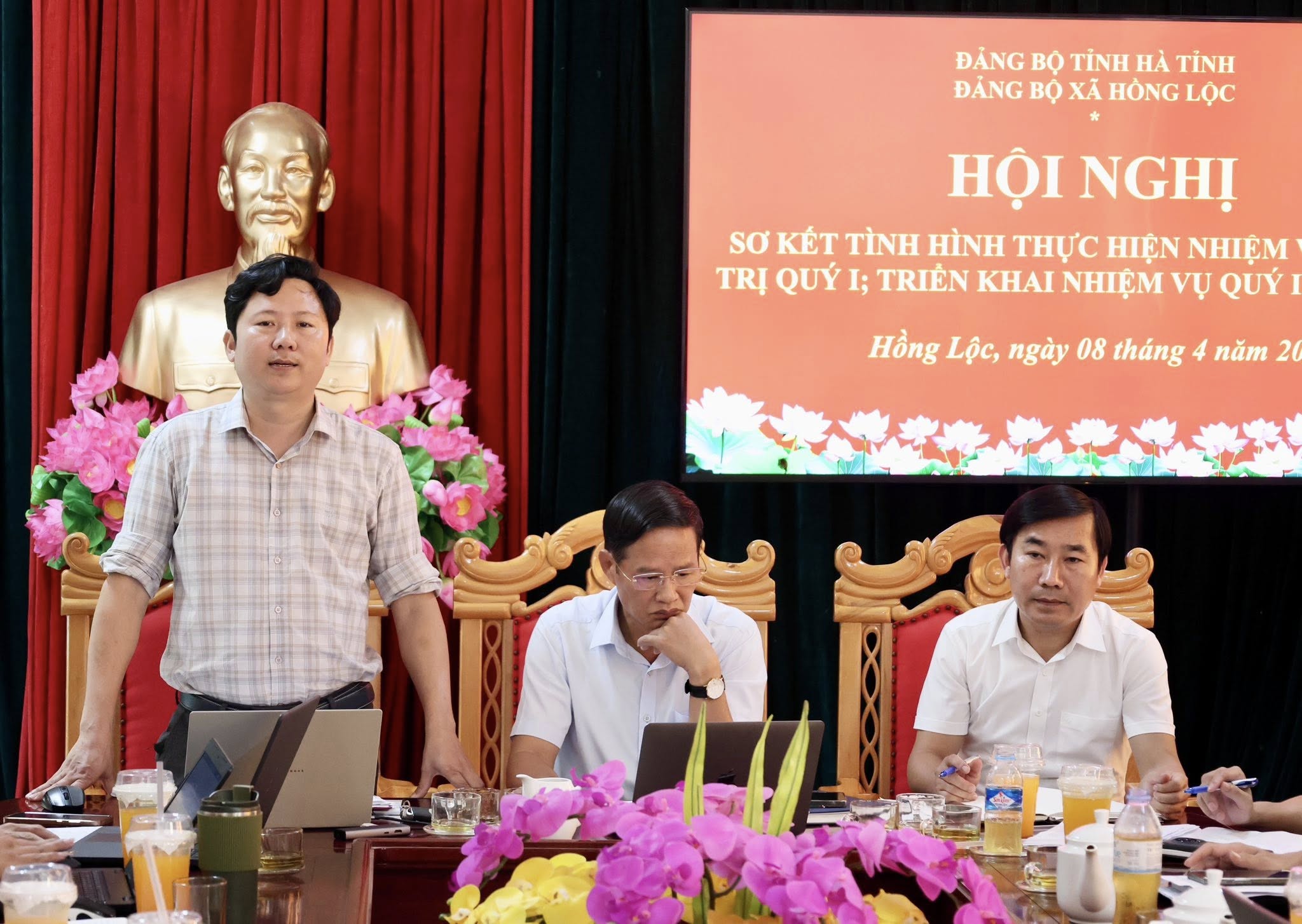 Chiều ngày 8/4, Đảng ủy xã Hồng Lộc tổ chức Hội nghị sơ kết công tác quý I, triển khai nhiệm vụ trọng tâm quý II năm 2026. Các đồng chí: Trần Danh Vinh - Bí thư Đảng ủy, Chủ tịch HĐND xã; Lê Văn Tuấn - Phó Bí thư Thường trực Đảng ủy xã; Võ Tá Bình - Phó Bí thư Đảng ủy, Chủ tịch UBND xã chủ trì hội nghị.
