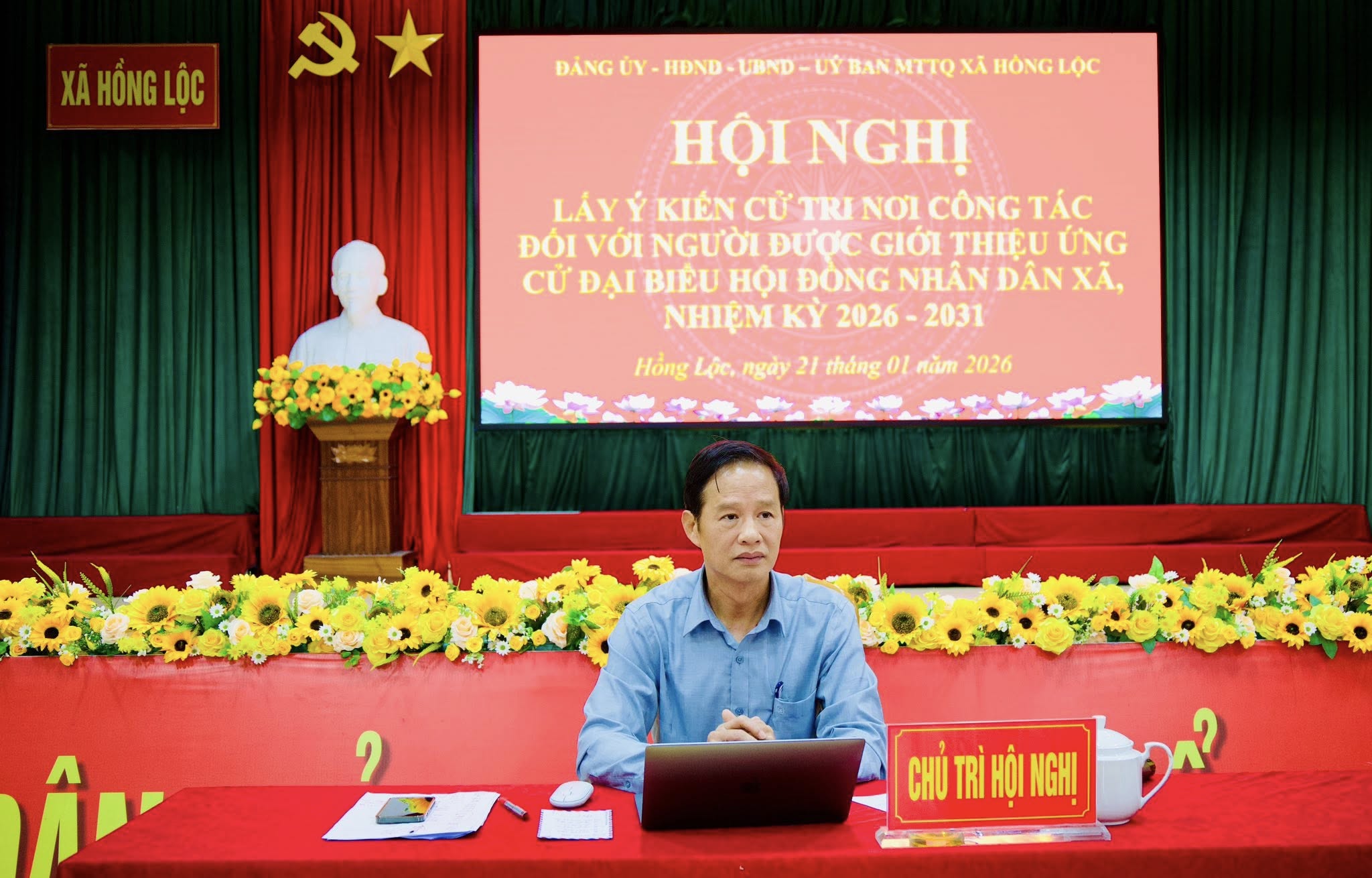 Thực hiện quy trình hiệp thương theo quy định của Luật Bầu cử đại biểu Quốc hội và HĐND, chiều ngày 21/1, Đảng ủy, HĐND, UBND, UBMT TQ xã Hồng Lộc tổ chức Hội nghị lấy ý kiến cử tri nơi công tác đối với người được giới thiệu ứng cử Đại biểu HĐND xã, nhiệm kỳ 2026 - 2031.