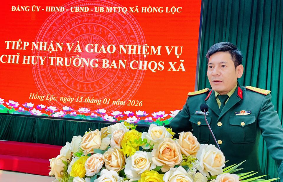Sáng ngày 15/01/2026, UBND xã Hồng Lộc tổ chức Lễ tiếp nhận và giao nhiệm vụ Chỉ huy trưởng Ban Chỉ huy Quân sự xã theo quyết định của Bộ CHQS tỉnh Hà tĩnh về công tác cán bộ. Tham dự buổi lễ có Trung tá Đặng Sỹ Ba, Phó Tham mưu trưởng Bộ Chỉ huy Quân sự tỉnh, Thượng tá Bùi Văn Vinh, Trưởng ban tác huấn, bộ chỉ huy quân sự Tỉnh, ở xã có các đồng chí Thường trực Đảng uỷ, TT HĐND, lãnh đạo UBND, đại diện Ủy ban MTTQ, BCH Quân sự xã, Công An xã.